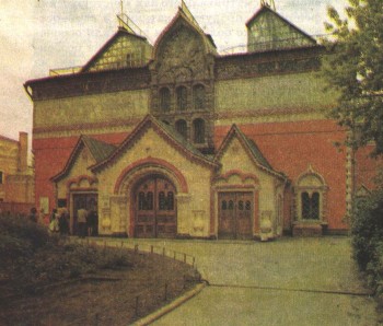 Третьяковская галерея. Ее главный фасад выполнен в 1902 г. по проекту художника В. М. Васнецова. Основана П. М. Третьяковым в 1856 г. и передана им в дар Москве в 1892 г. совместно с завещанным городу собранием его брата С. М. Третьякова. Открытие галереи состоялось 16 мая 1893 г.