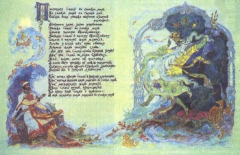 Садко на дне морском. Иллюстрация Б. Н. Кукулиева к былине «Садко». Палех. 1966 г.