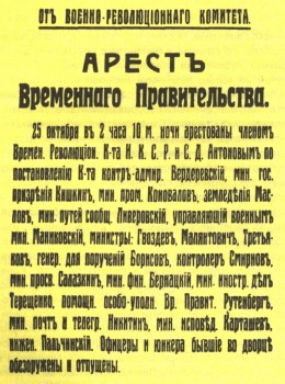 Листовка Петроградского военно-революционного комитета об аресте Временного правительства в Зимнем дворце.