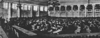 В разгар революции Николай II пошел на более серьезную уступку: в манифесте от 17 октября 1905 г. он обещал созвать Думу законодательного характера, допустив к ее выборам те классы, которые, по положению 6 августа, были лишены избирательных прав. Но ее нельзя назвать в полном смысле парламентом, так как правительство было ответственным не перед ней, а перед императором, к тому же издававшим указы, имевшие характер законов. 11 декабря 1905 г. особым царским указом определялся порядок выборов в Думу. Они должны были происходить по куриям — сословным группам избирателей, причем голос помещика приравнивался к 3 голосам представителей буржуазии, 15 голосам крестьян и 45 голосам рабочих.