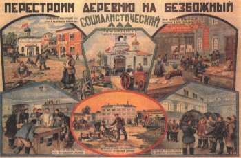 Перестроим деревню на безбожный социалистический лад. Плакат неизвестного художника, выпущенный московским издательством «Безбожник». 1930.