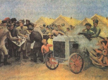 Красноармейцы в деревне. Картина художника Филипповича. 1931.