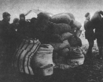 Мешки с зерном, найденные у кулака. Северный Кавказ. 1933 г.