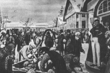 Привоз крепостными провизии. Картина художника М. М. Зайцева. Крепостные крестьяне, являясь собственностью помещика, снабжали своего господина всем необходимым. Их труд давал ему возможность жить в полной праздности.