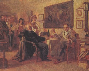 Торг. Картина художника Н. В. Неврева. 1866. Помещик был волен распоряжаться жизнью и судьбой своих крепостных. Он мог их продать, проиграть в карты, обменять.