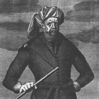 Степан Разин (ок. 1630 — 1671) — руководитель одного из крупнейших крестьянских восстаний 17 в., в котором участвовало до 200 тыс. человек. Восставшие хотели «иттить к Москве и побить на Москве бояр и всяких начальных людей». Казнен на Красной площади в 1671 г. Гравюра из приложения к «Гамбургской газете». 1671.