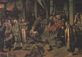 Смутное время на полвека затормозило оформление общегосударственной системы крепостного права, но к середине столетия эта система все же сложилась, получив юридическое воплощение в Соборном уложении 1649 г. Кроме того, во второй половине 17 в. положение народных низов усугублялось ростом налогов, трудовых повинностей и чрезвычайных сборов на государственные нужды, ухудшением финансового положения в стране из-за кризиса денежной системы, вызванного введением медных денег, и т. п. Ответом на все это стало массовое бегство крестьян и посадских людей из центра страны на юг, особенно на Дон, где еще не утвердились феодальные порядки. Однако переполнение казачьих городков голытьбой создавало угрозу голода и усиливало напряженность в самой казачьей среде. В 1667 г. «голутвенные» казаки Дона объединились вокруг Степана Разина. Он хотя и принадлежал к «домовитому» казачеству, но хорошо знал жизнь бедного люда и сочувствовал ему. Войско Разина числом более тысячи человек отправилось на Волгу, где стало грабить речные караваны, увеличивая таким образом не только запасы продовольствия и снаряжения, но и свою численность — за счет сопровождавших суда и переходивших на сторону Разина работных людей и стрельцов. С боями казаки прорвались к Каспийскому морю. Они хитростью взяли Яицкий городок, перезимовали в нем и в марте 1668 г., в очередной раз разгромив высланных против них царских ратников и приняв пополнение с Дона, отплыли к западному и южному побережью Каспия. Во время набегов на персидские владения разницы захватили много дорогих товаров, уничтожили в ожесточенном сражении большой шахский флот, но в августе 1669 г. вернулись (к устью Волги. По договоренности с царскими властями на условиях «покаяния» и частичного разоружения казаков пропустили на Дон через Астрахань. Народ с ликованием встречал Разина и его «детушек», и те обещали вскоре освободить всех от боярского гнета.