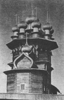 Церковь Покрова в Кижах — один из памятников русского деревянного зодчества, в котором запечатлелось удивительное мастерство народных умельцев, строивших большие часовни, многокупольные церкви, деревянные избы, мельницы без единого гвоздя, при помощи одного топора. 1874 г.