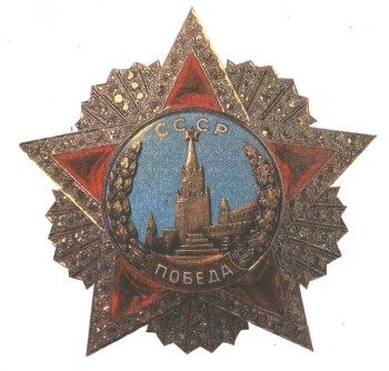 Орден «Победа». Высшая военная награда. Учрежден в ноябре 1943 г. Двумя такими орденами награждены И. В. Сталин, маршалы Г. К. Жуков, А, М. Василевский.