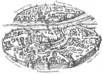 Республиканские формы правления проявлялись не только в выборной системе. Все важнейшие вопросы государства решало вече. Особое место занимало самоуправление на всех уровнях. Низшей административно-территориальной самоуправляемой ячейкой была улица, или уличанская община, имевшая своих старост, вече, суд, общественные сооружения. Это была одновременно и религиозная, христианская, община. Почти на всех улицах имелись свои храмы. Некоторые улицы назывались по церквам. Уличанские общины объединялись в более крупные общины — концы. До второй половины 12 в. их в Новгороде было три: Людин, Славенский, Неревский. Затем добавился еще один, Плотницкий, а в 14 в. — Загородский. Им были свойственны те же черты, что и уличанским общинам. Пять концов составляли общину-город Святой Софии. Общинное устройство было и в сельской местности, в волостях, при погостах.