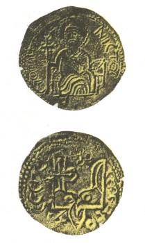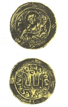Сребреник Святололка. На лицевой стороне монеты изображение князя Святополка, прозванного Окаянным, который убил трех своих братьев и завладел их уделами.