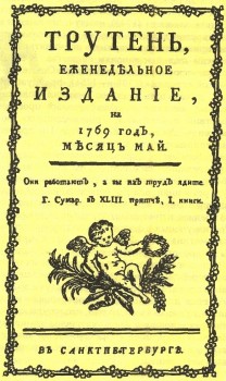 Титульный лист журнала «Трутень», издаваемого Н. И. Новиковым в 1769 — 1770 гг. Именно в этом журнале впервые были показаны все тяготы крепостного права.