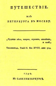 Радищев был самым радикальным из русских просветителей 18 в. В небольшом сочинении «Письмо к другу, жительствующему в Тобольске» (1789), рассматривая значение дел Петра I, он отметил, что тот «истребил последние признаки вольности своего отечества». Процветание отечества не может быть без вольности граждан, а что касается царей, то нет «и до скончания мира примера, чтобы царь упустил добровольно что-либо из своей власти, сидя на престоле». В знаменитой книге «Путешествие из Петербурга в Москву» (1790), за которую он был отдан под суд и сослан, Радищев призвал к полному отказу от крепостного права, показав бесчеловечие дворян, лицемерие монархов. За народом же он оставлял право на возмущение и отмщение.