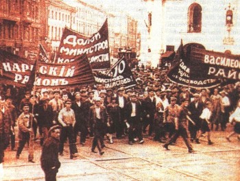 Демонстранты несут плакаты с надписью «Долой министров-капиталистов!».