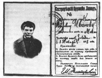 Пропускной билет Константина Петровича Иванова с наклеенной фотографией В. И. Ленина в гриме.