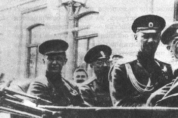 Встреча генерала Л. Г. Корнилова офицерами. Август 1917г. Летом — осенью 1917 г. в России были три человека, претендовавшие на власть. Это Л. Г. Корнилов, В. И. Ленин, А. Ф. Керенский