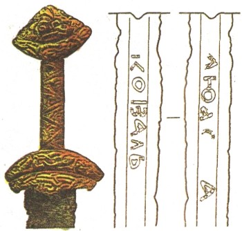 Надпись на клинке «Людота коваль». Меч был основным оружием рукопашного боя у древнерусского воина. Состоял меч из обоюдоострого клинка, крестовины, рукояти и набалдашника. Крестовины были с прямыми и загнутыми (вверх и вниз) концами.