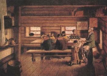 Школа в Московской Руси. Картина художника Б. М. Кустодиева.