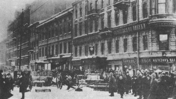 Баррикады на Литейном проспекте в Петрограде. Февраль 1917 г.
